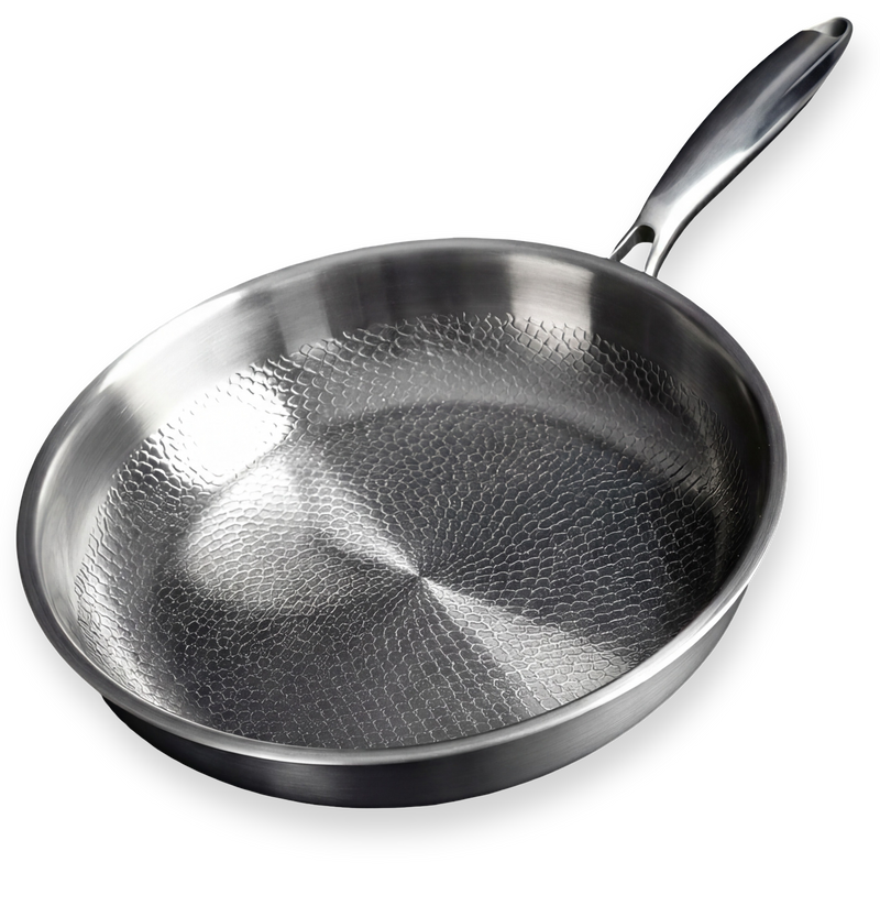 Standaard anti-aanbak- en keramische pannen creëren hotspots en koude zones, waardoor consistent, professioneel resultaat onmogelijk wordt.